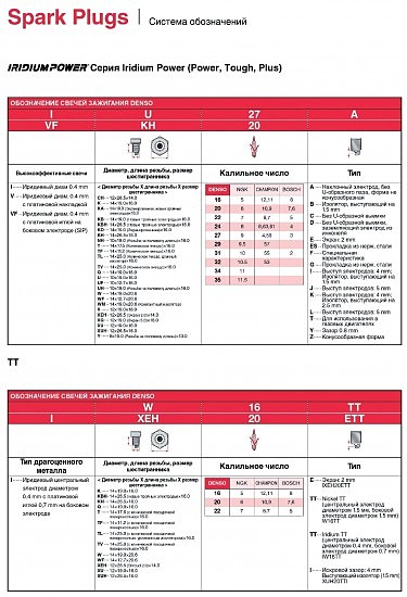 Расшифровка маркировки свечей зажигания DENSO