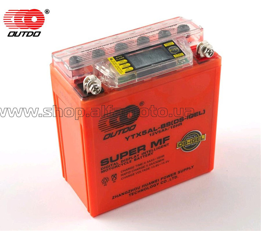 АКБ 12V 5А гелевый (высокий) (119x60x128, оранжевый, с индикатором заряда, вольтметром) OUTDO