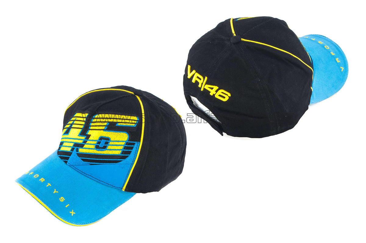 Бейсболка 46 (черная, синий козырек)