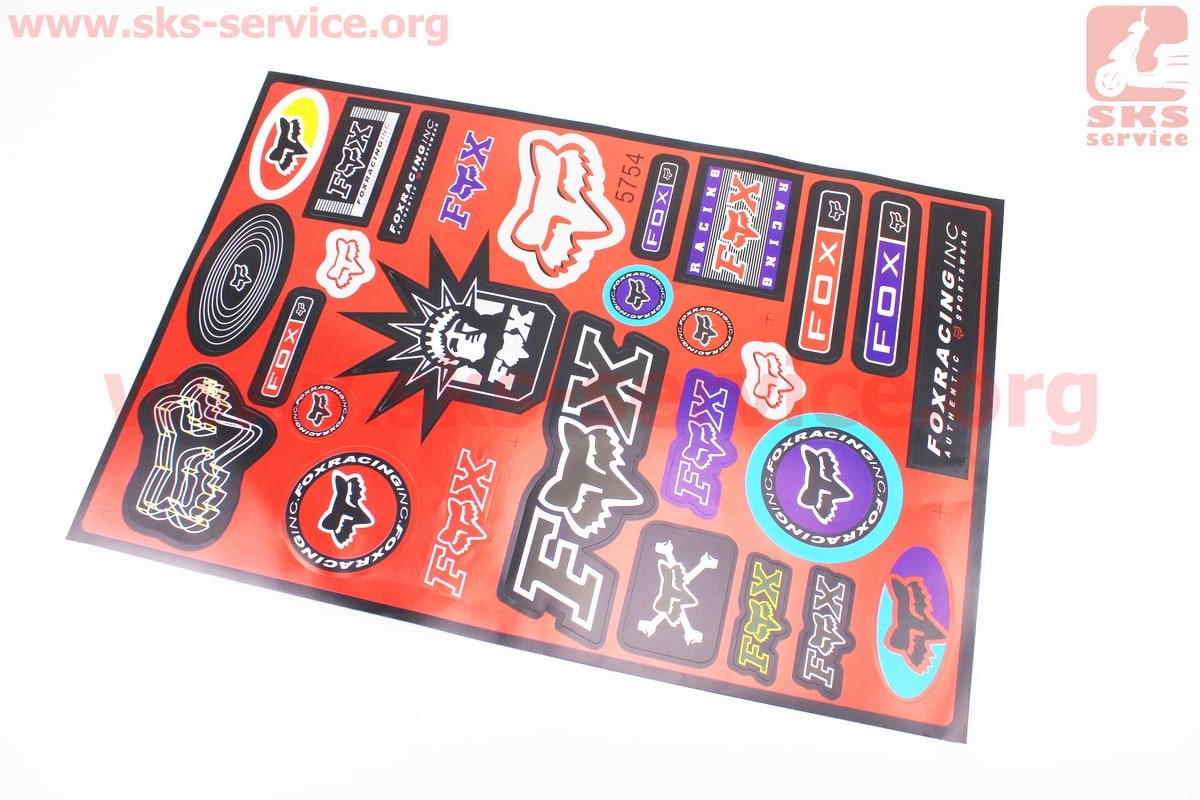 Наклейки набор 28шт "FOX" (красный фон), 5754 (46x31см)