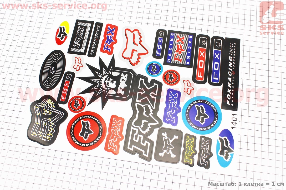 Наклейки набор 28шт "FOX" (белый фон), 1401 (32x23см)