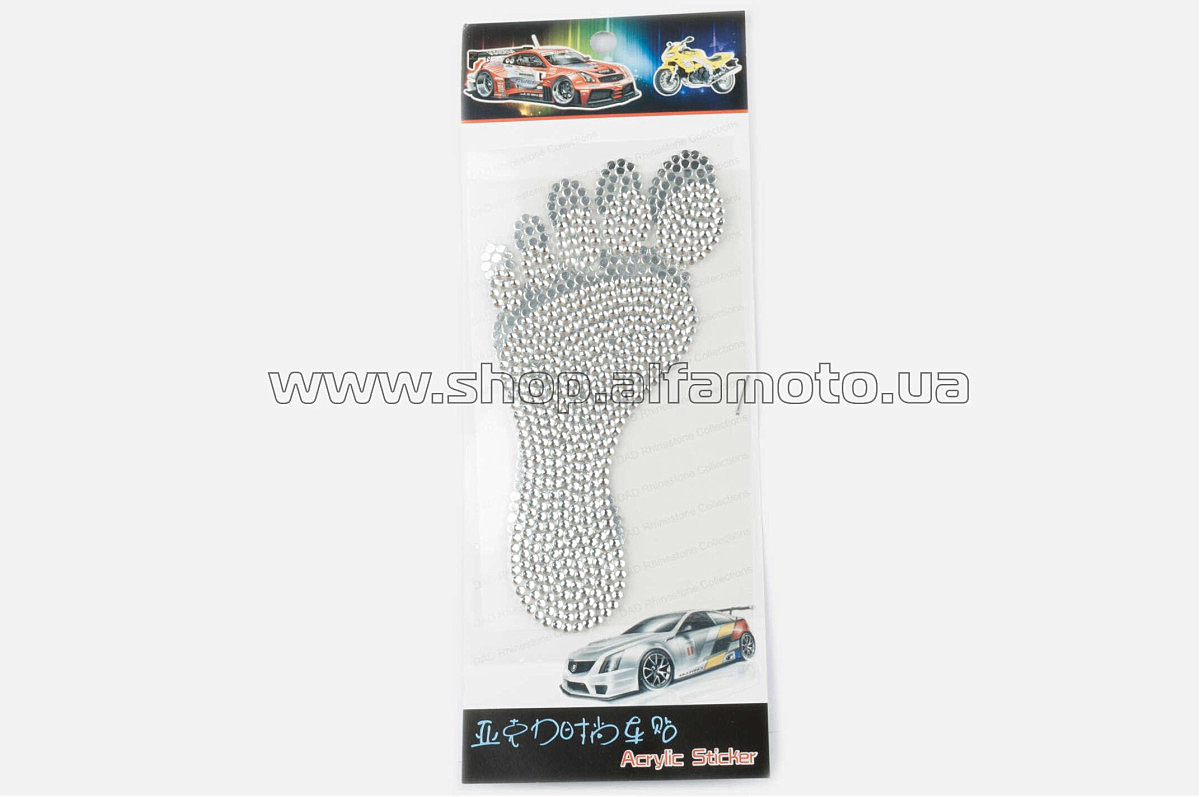 Наклейка декор FOOT (16x9см, стразы серебро)