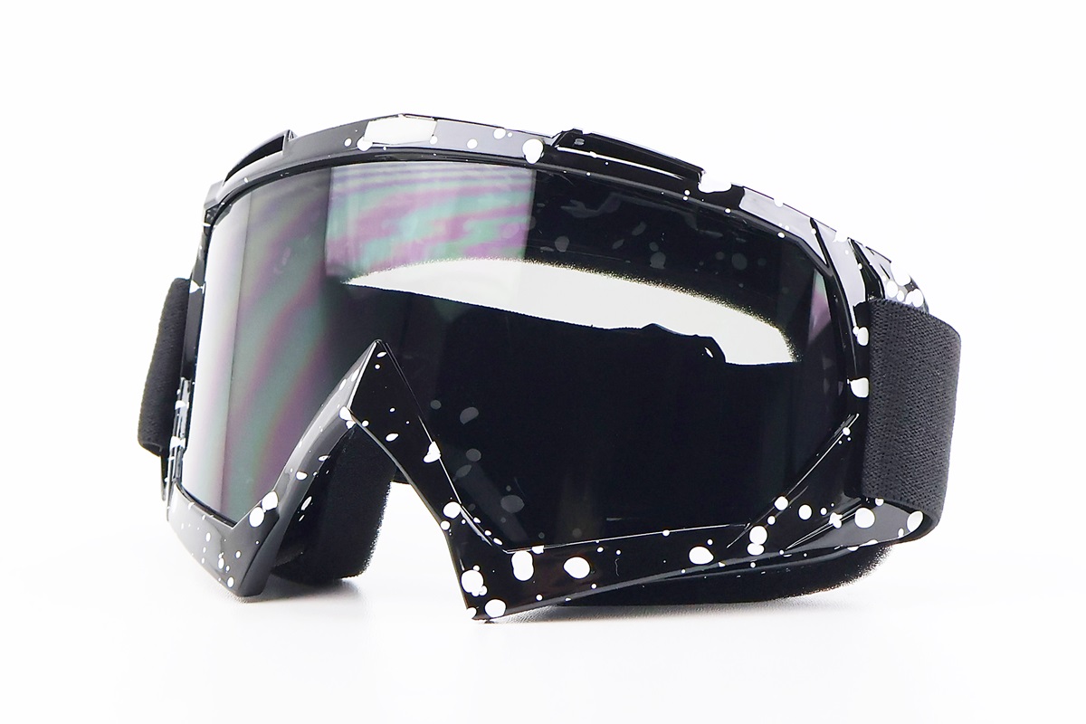 Очки кроссовые, черные с белыми точками (затемненное стекло)