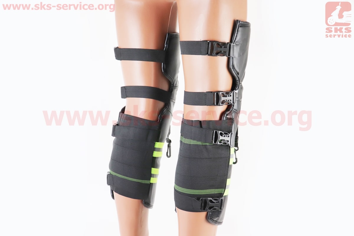 Наколенники защитные, утепленные (колено+голень) к-кт 2шт, Чёрные со светоотражающей полосой