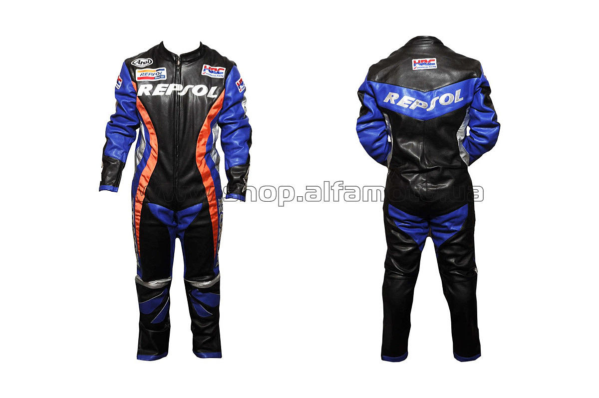 Комбинезон кожзам (size:L, черно-синий, Honda REPSOL)