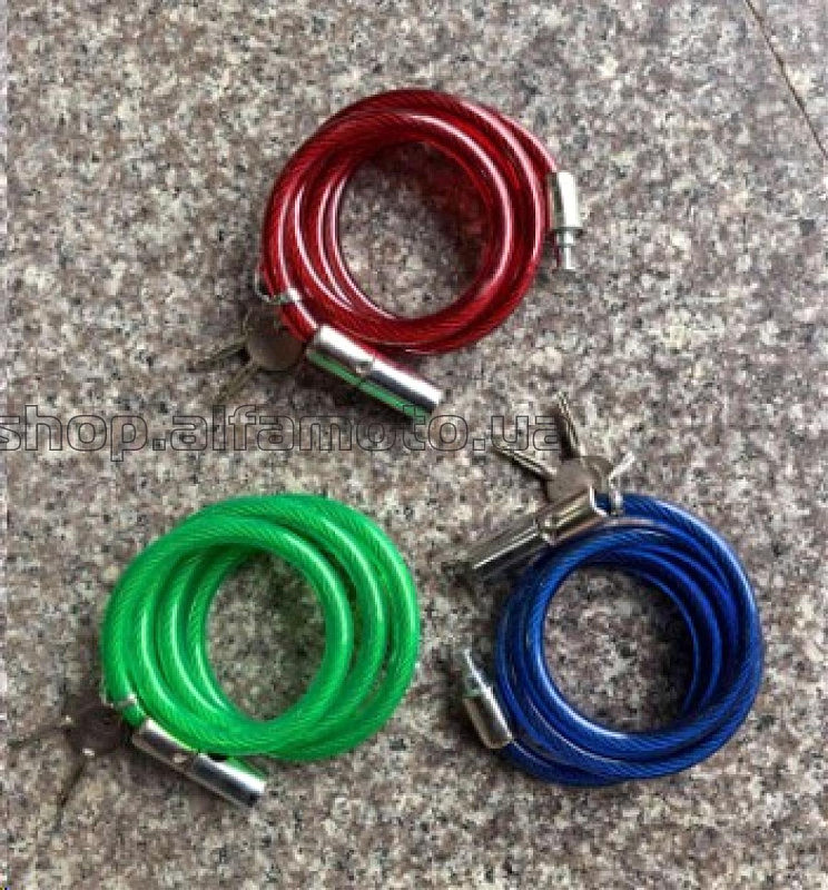 Замок на колесо (трос) (с ключом) (цвет в ассортименте) FYT