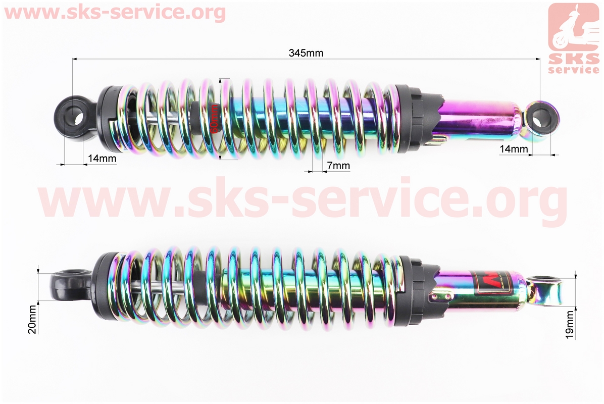 Амортизатор задний JH/CB/CG — 345мм*d60мм (под втулки) регулир., плазма к-кт 2шт