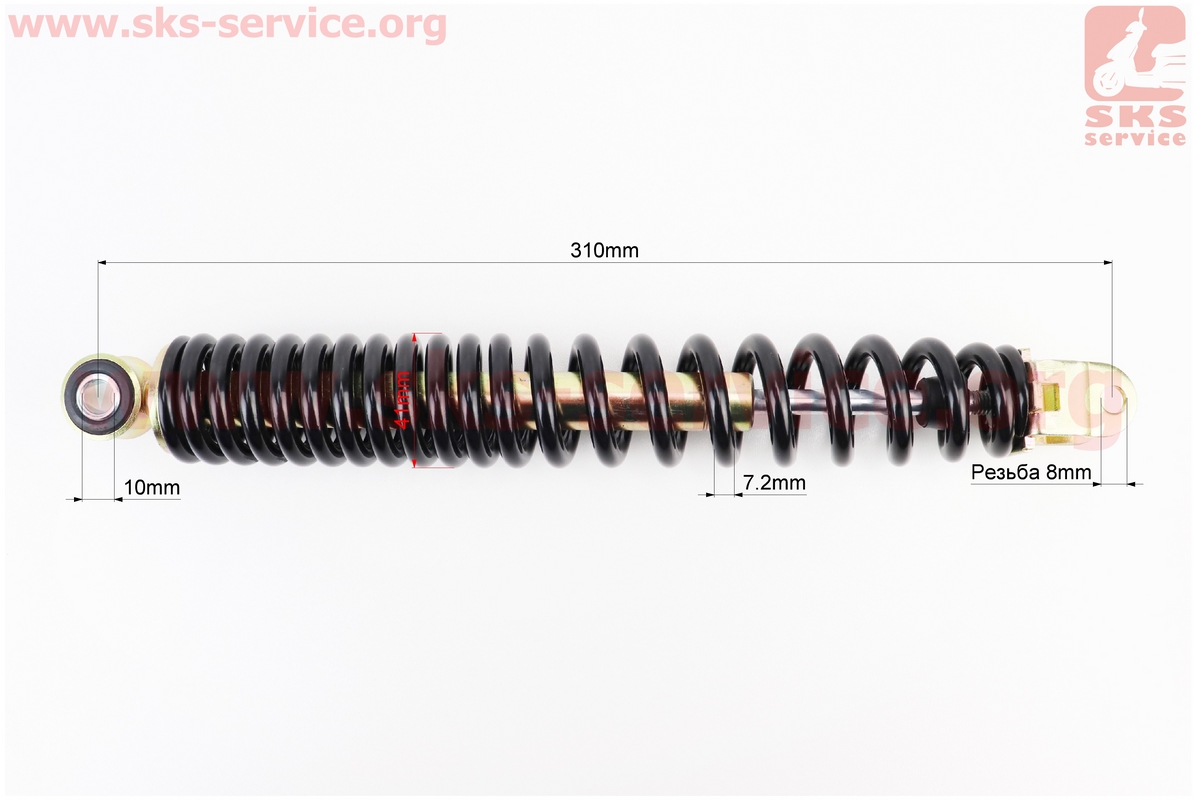 Амортизатор задний GY6/Honda — 310мм*d41мм (втулка 10мм / вилка 8мм), черный