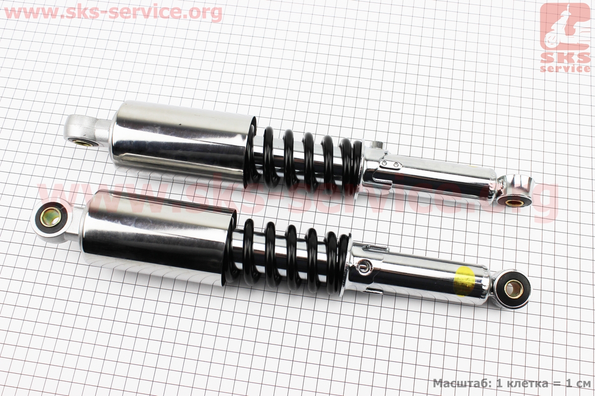 Амортизатор задній JH/CB/CG — 340мм*d58мм (втулка 12мм / втулка 10мм) зі склянкою регул., чорний к-кт 2шт