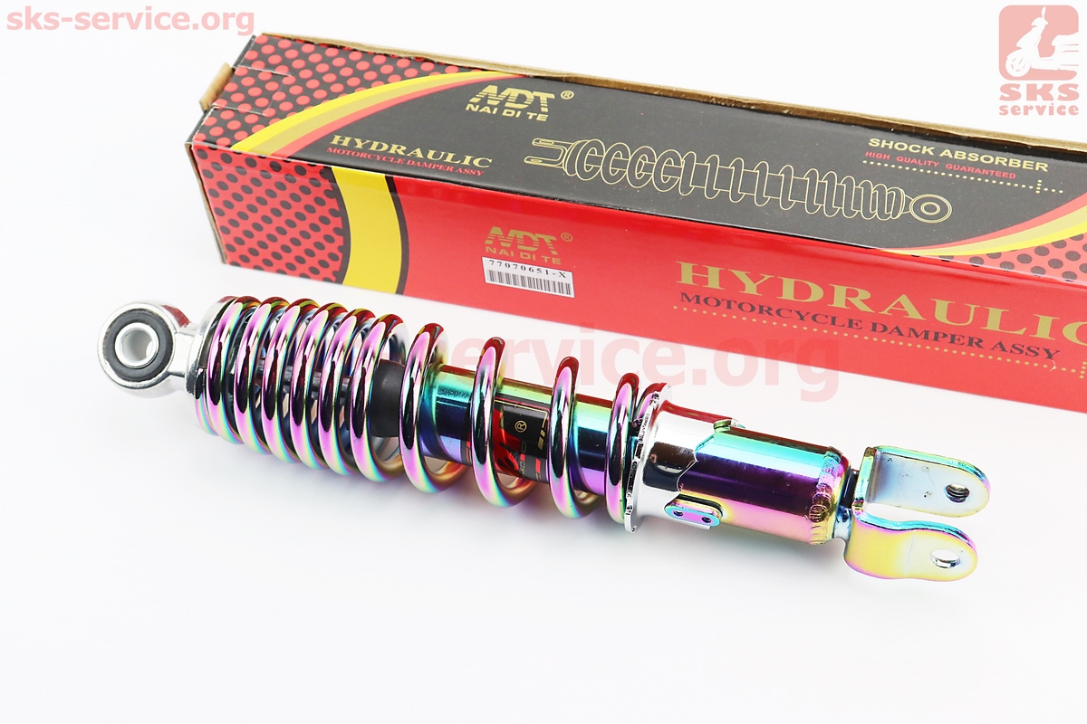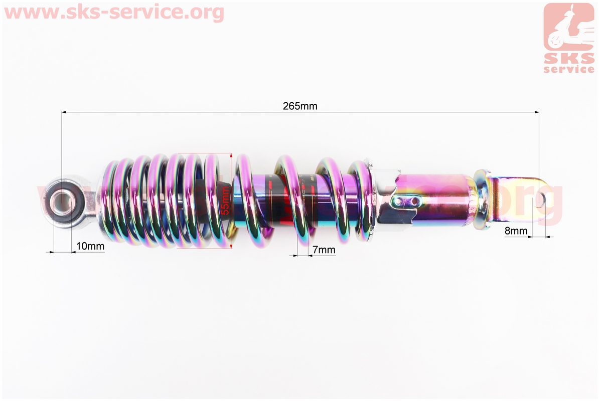 Амортизатор задний GY6/Yamaha — 265мм*d55мм (втулка 10мм / вилка 8мм) регулир., плазма