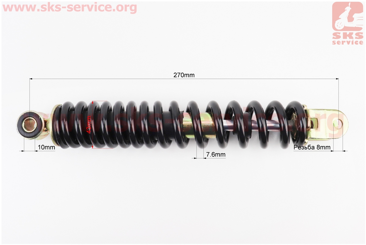 Амортизатор задний GY6/Suzuki — 270мм*d43мм (втулка 10мм / вилка 8мм), черный