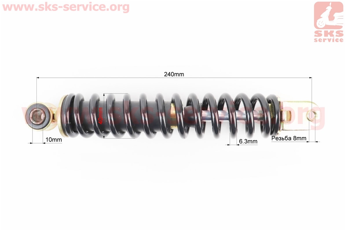 Амортизатор задний GY6/Honda — 240мм*d40мм (втулка 10мм / вилка 8мм), черный