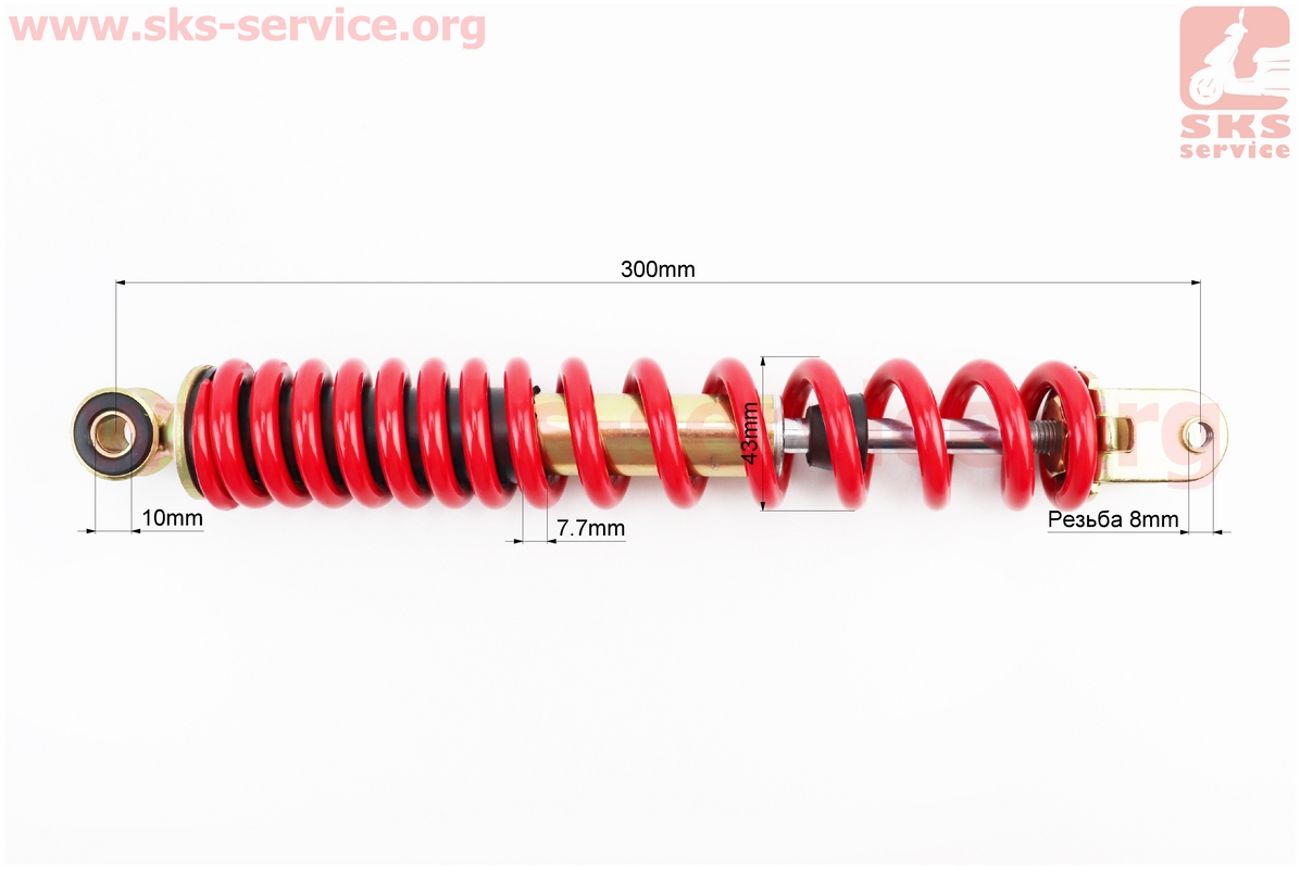 Амортизатор задній GY6/Honda - 300мм*d43мм (втулка 10мм / вилка 8мм), червоний
