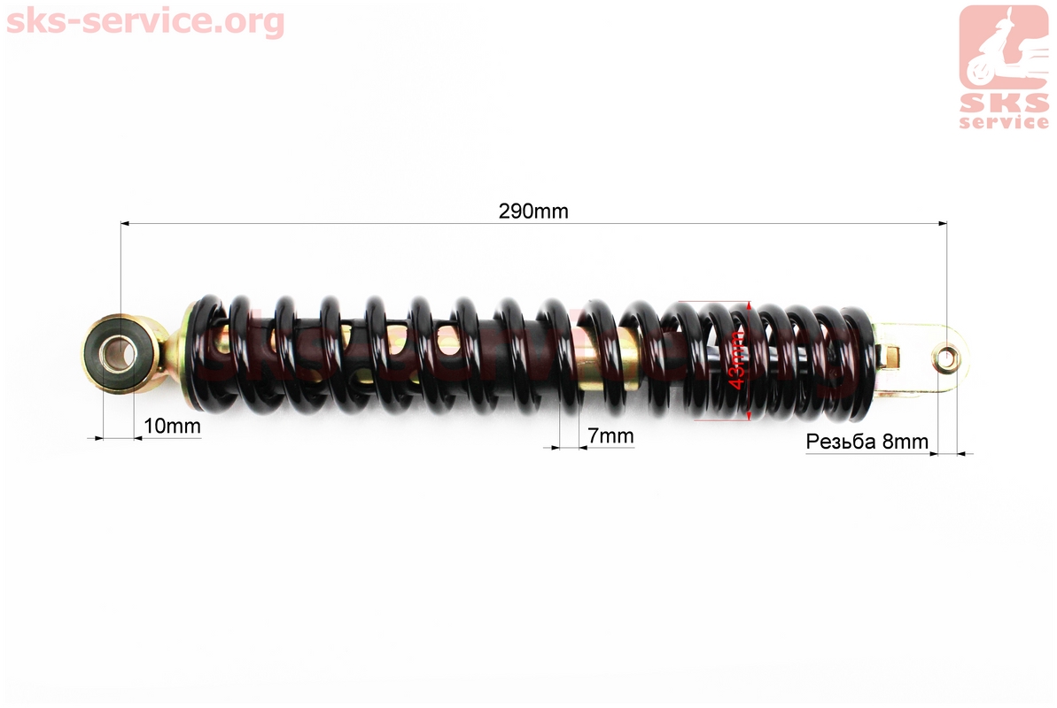 Амортизатор задний GY6/Honda - 290мм*d43мм (втулка 10мм / вилка 8мм), черный, от 3шт -8%