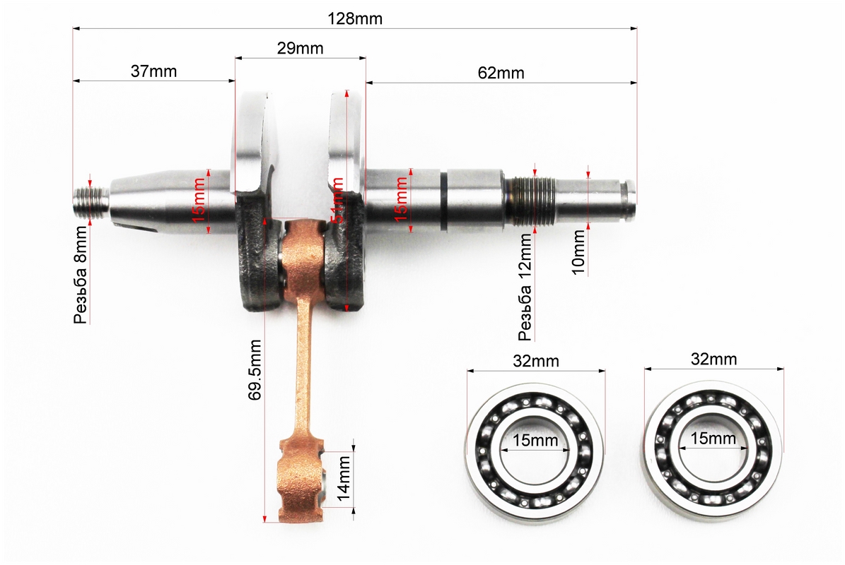 Коленвал, палец 10mm MS-180 + подшипник 10x14x11mm + подшипник 6002-2шт