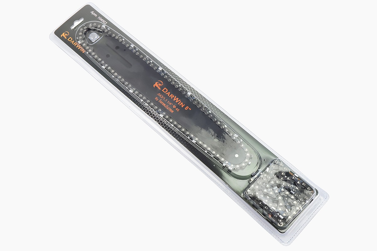 Шина 8"-1,1mm 1/4" 46зв L-24см (подходит на аккумуляторную мини-пилу) + цепь 1/4"-1,1mm-46зв. круг. зуб-2шт, на блистере