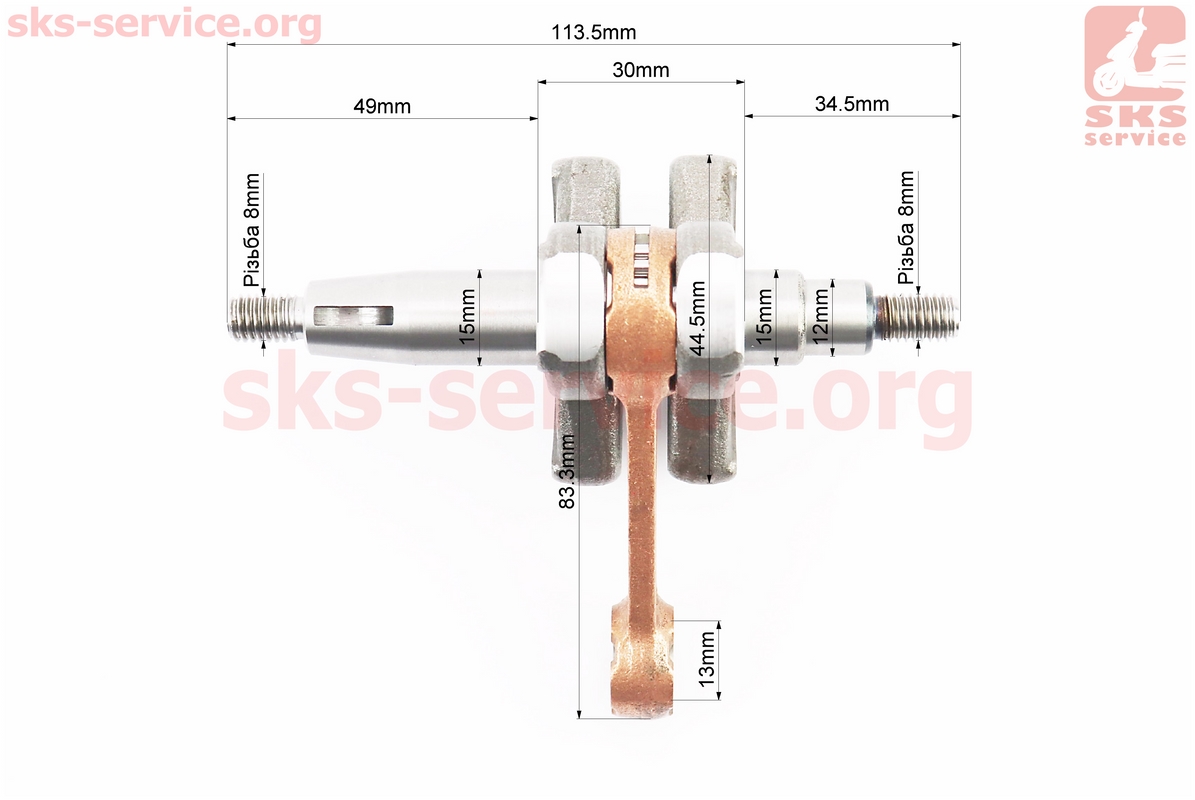 Коленвал 1E40F шатун — желтый