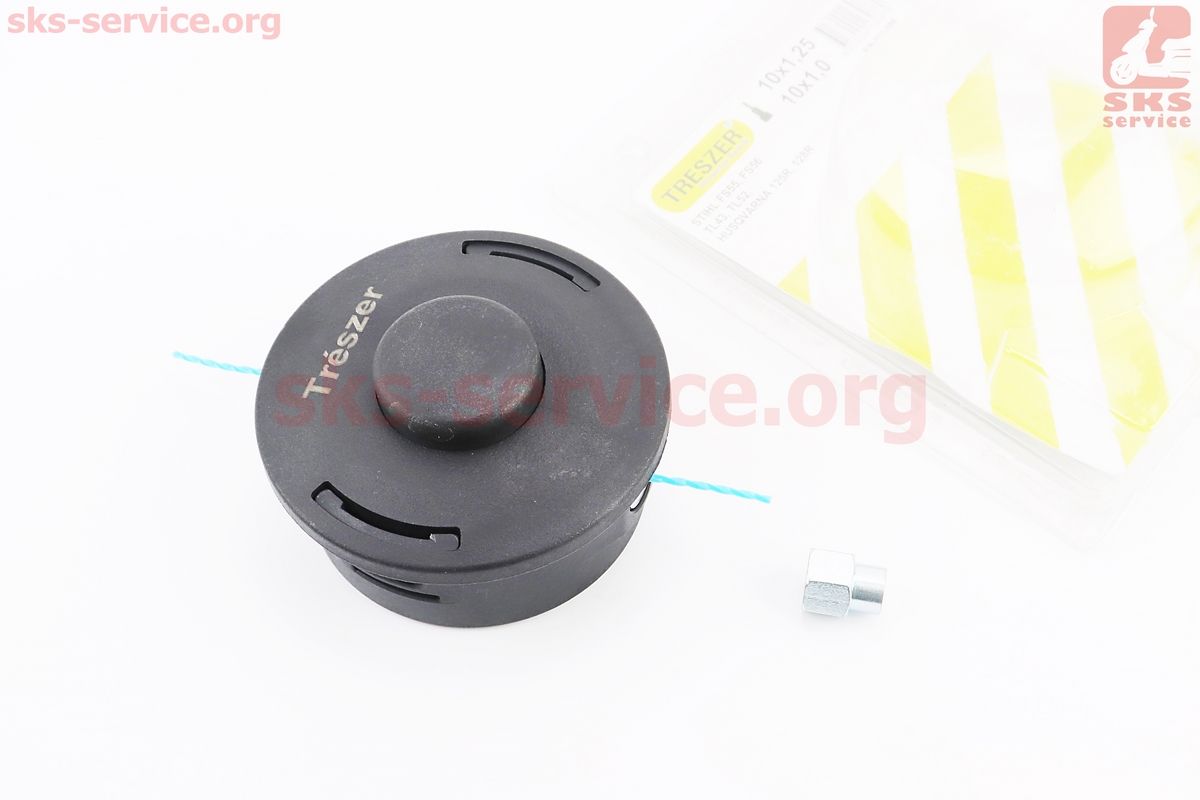 Шпуля (бабина, катушка), под вал М10х1,25, + переходник M10x1,00, D-120mm, ОLEO MAC SPARTA 38/44, ECHO, EFCO, HUSQVARNA