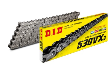 Серия VX3 сочетает в себе передовые разработки производства цепей. Технология «Direct energy transfer» позволяет за счет более жесткой конструкции элементов увеличить максимальное ускорение в момент открытия дроссельной заслонки.