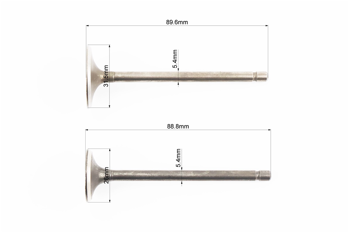 Клапана выпускной (НЕМАГНИТный) (h-88.5; d-27), впускной (h-88.5; d-31,5) к-кт 2шт CB-150/200cc