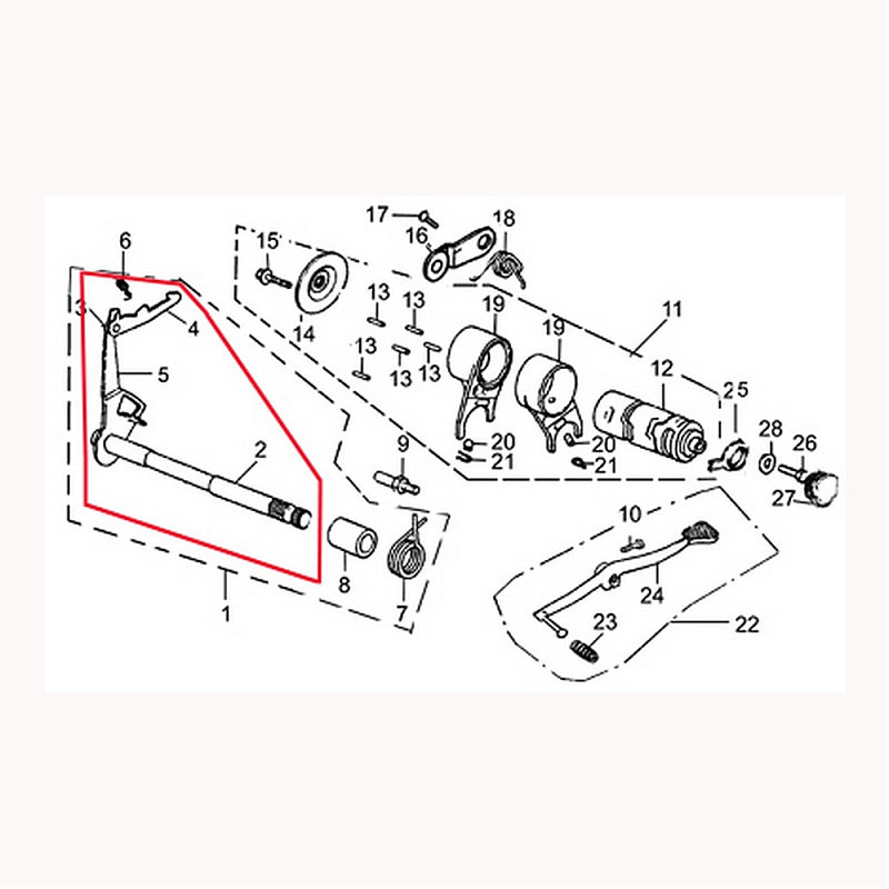 Рычаг переключения передач (вал с шлицами) мото