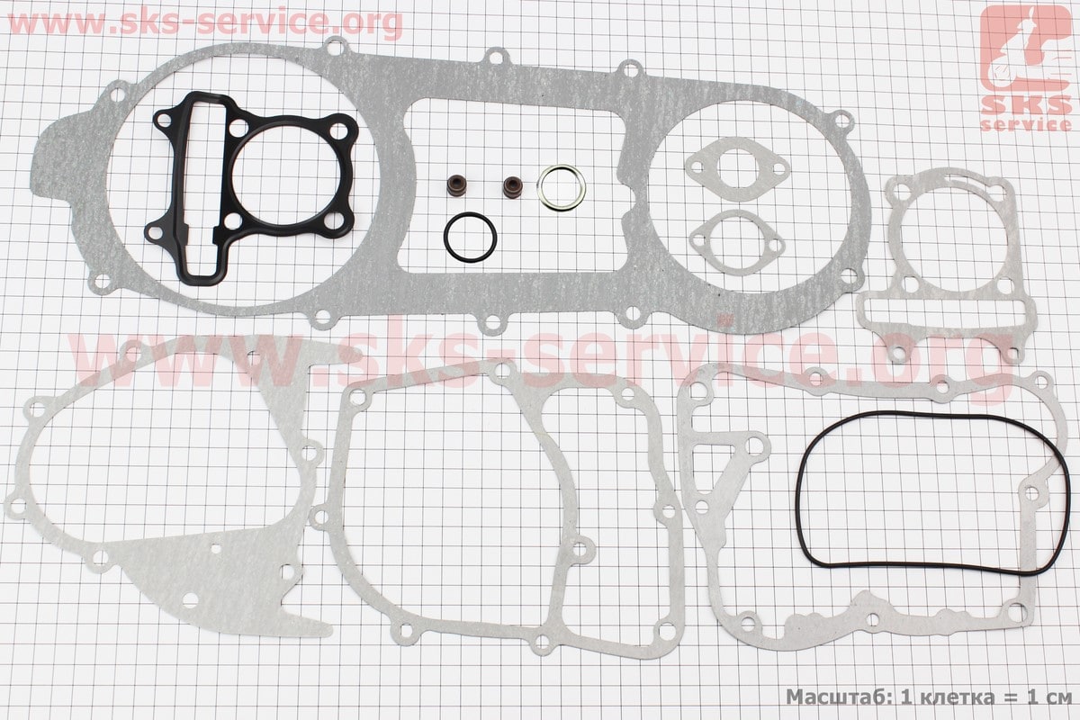 Прокладки двигателя 150cc-57,4мм, к-кт 15 деталей, длинный вариатор