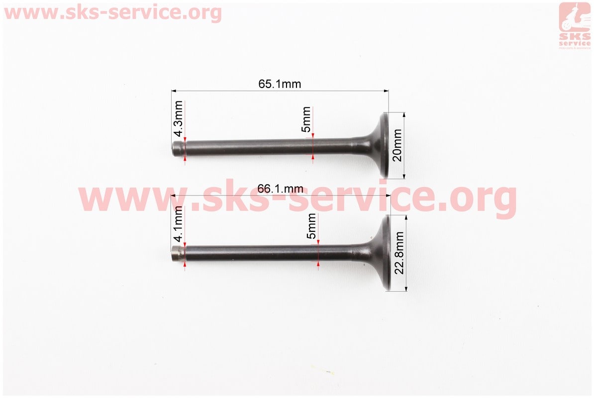 Клапан впускной, выпускной (НЕМАГНИТный) к-кт УВЕЛИЧЕННЫЕ (d=20/23мм; L=65/66мм)