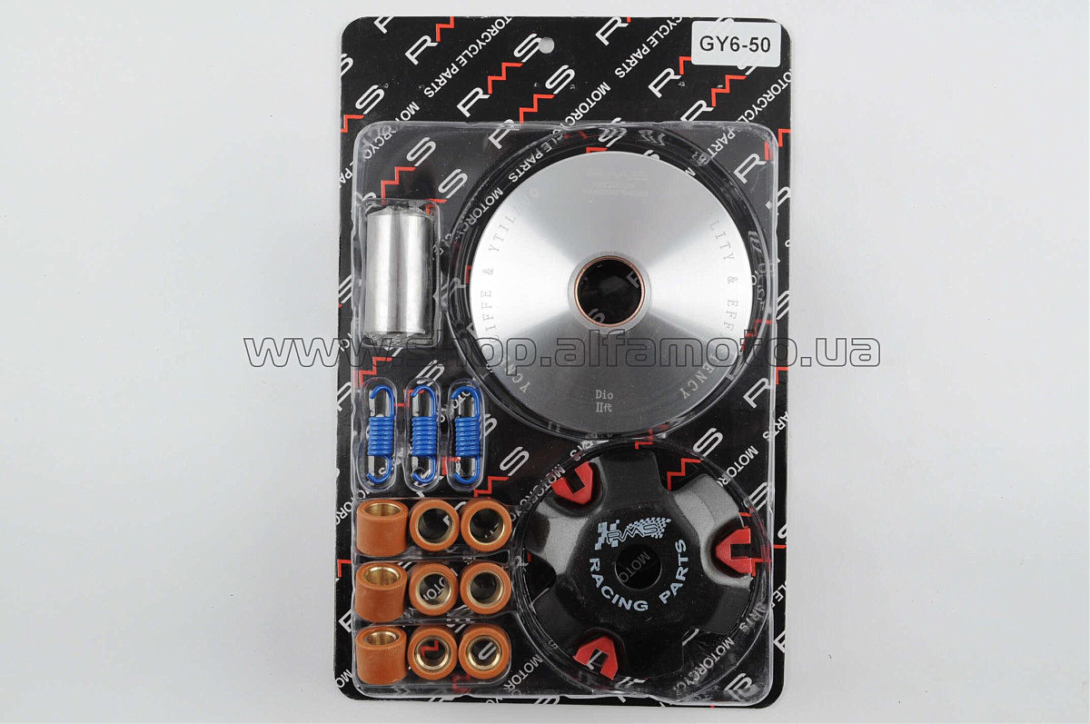 Вариатор передний (тюнинг) 4T GY6 50 (ролики латунь 9шт, палец, пруж. сцепления) RMS