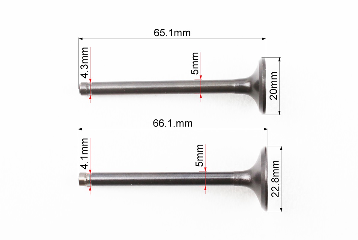 Клапан впускной, выпускной (НЕМАГНИТный) к-кт УВЕЛИЧЕННЫЕ (d=20/23мм; L=65/66мм)