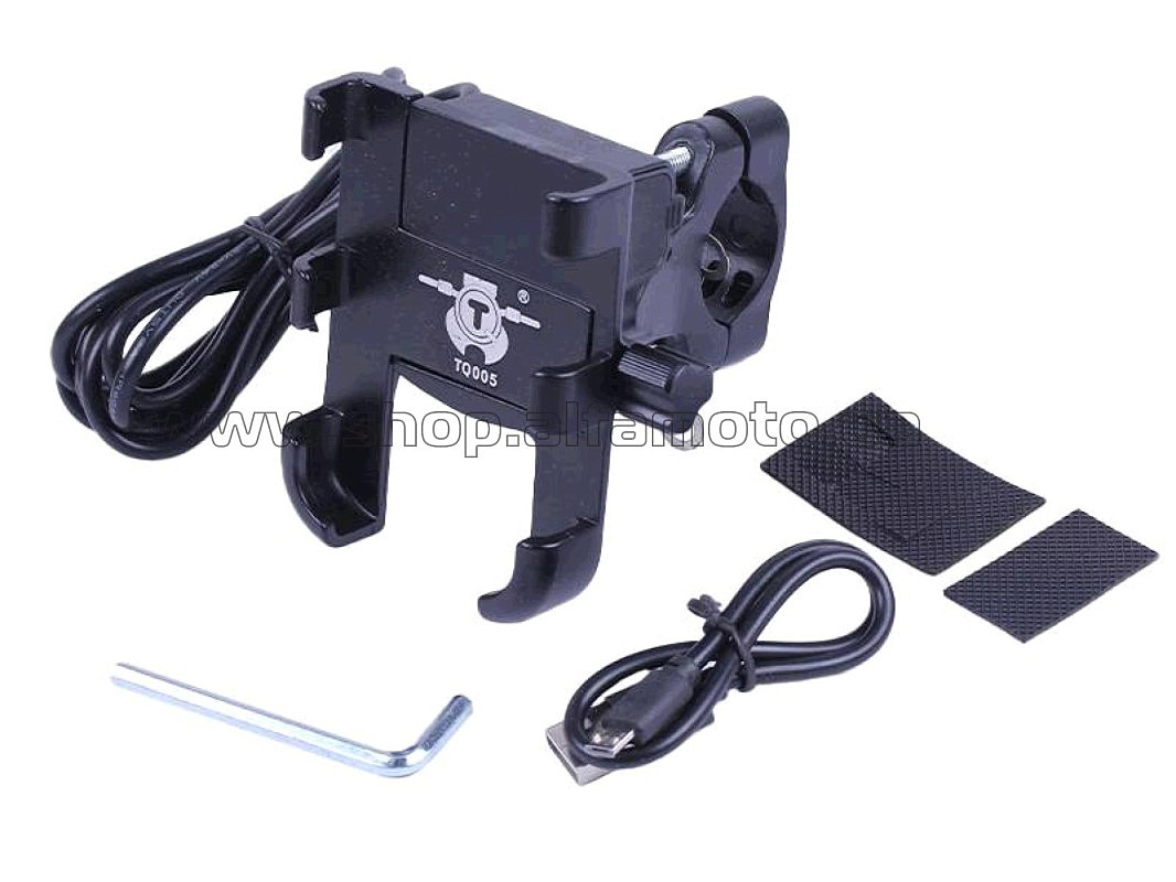 Крепление для телефона на руль HFCM-29 алюминий черный (с зарядкой) AMG