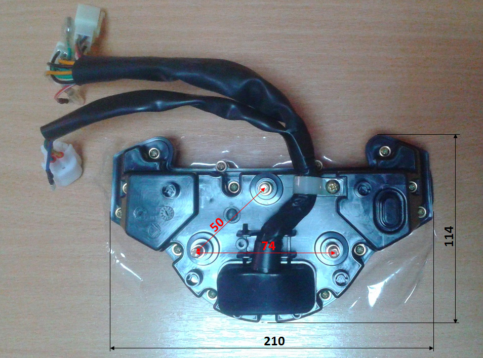 Складається з електронного спідометра, стрілочного тахометра з електричним підключенням, індикаторів поворотів, індикатора включення далекого світла, індикатора гранично допустимої температури охолоджувальної рідини, індикатора рівня палива, одометра, годинника, кнопок вибору режиму показу дисплея та налаштування відображення.