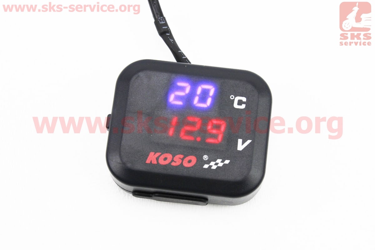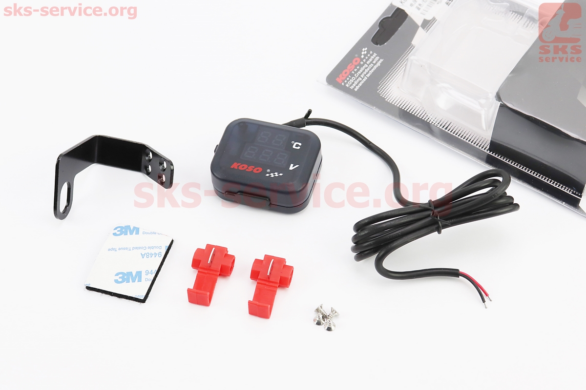 ВОЛЬТМЕТР с дисплеем, красный циферблат + датчик температуры воздуха + крепление (универсальный, компактный)