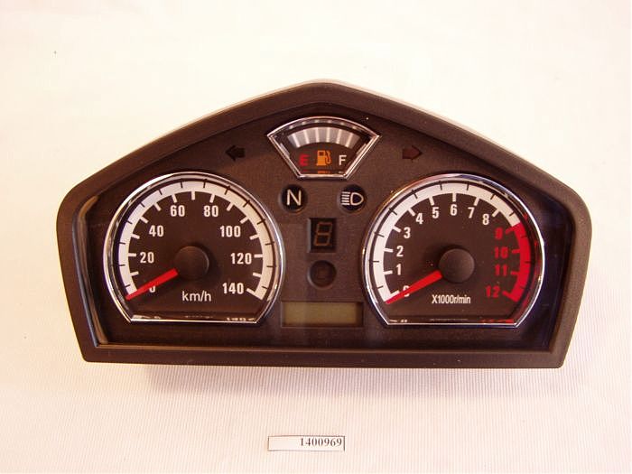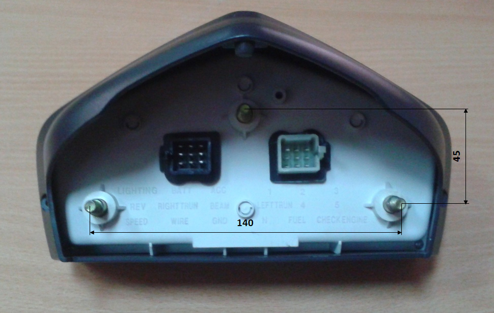 3. Спидометр – электрическое подключение, тахометр – электрическое подключение, индикатор топлива, индикатор нейтральной передачи, индикатор включения дальнего света, индикатор поворотов, индикатор текущей передачи, часы.