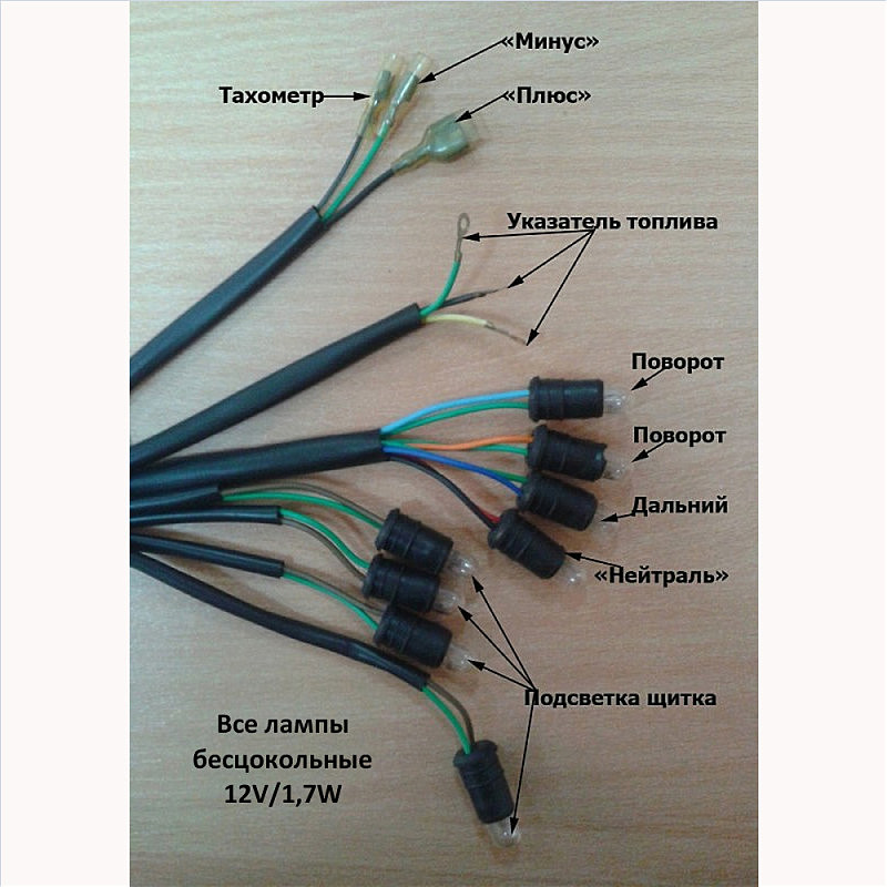 3. Восемь патронов с бесцокольными лампами 1,7Вт, три контакта-шайбы для подключения индикатора уровня топлива, два контакта «гнездового» типа, одни двойной контакт «гнездового» типа.
