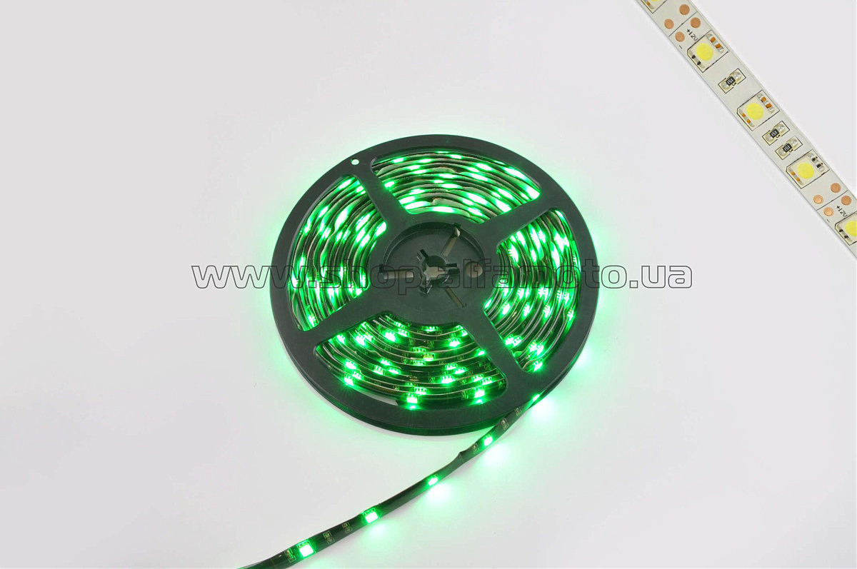 Лента светодиодная SMD 5050 (зеленая, влагостойкая, 30 крист/1м, бухта 5м)