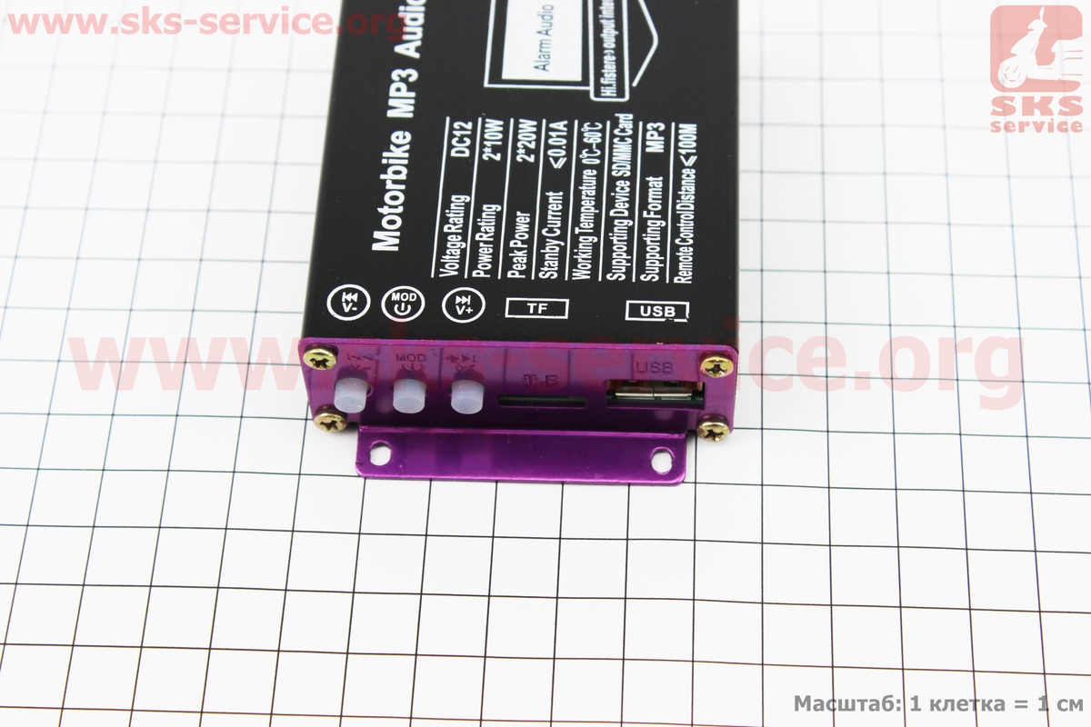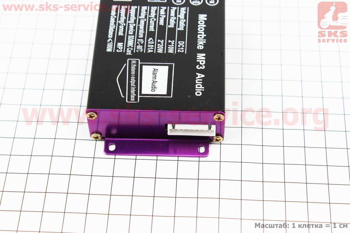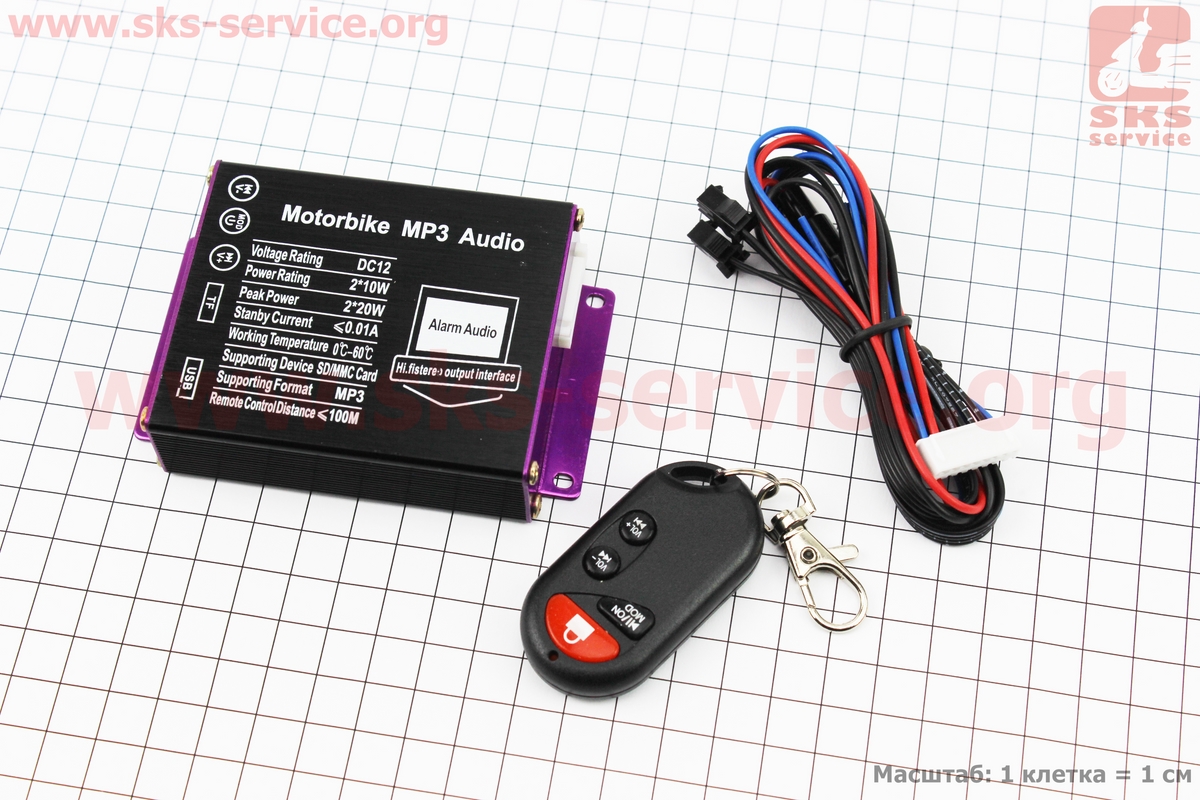 АУДИО-блок (МРЗ-USB/SD, FM-радио, пультДУ, сигнализация) + колонки 2шт (черные)