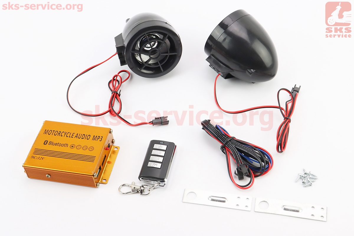 АУДИО-блок (Bluetooth, МРЗ-USB/SD, FM-радио, пультДУ, сигнализация) + колонки 2шт (черные)