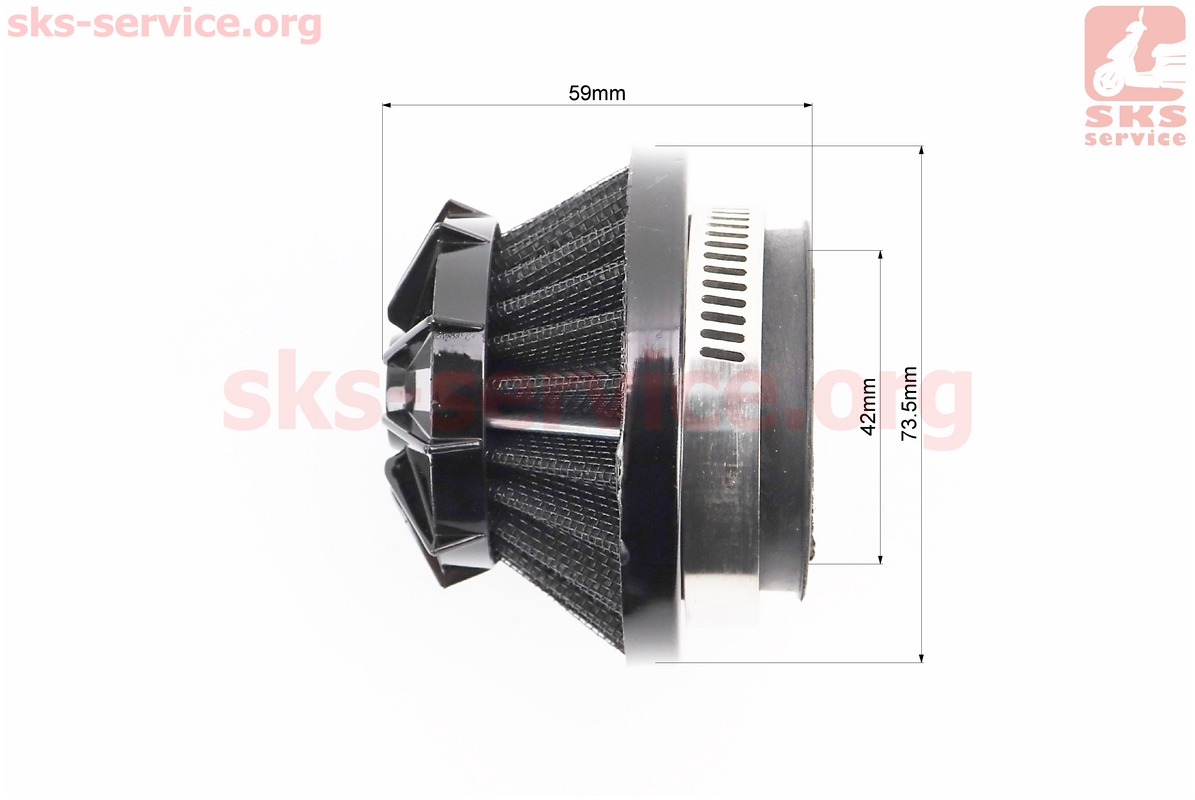 Фильтр воздушный нулевой 42мм прямой "конус" черный (малый)