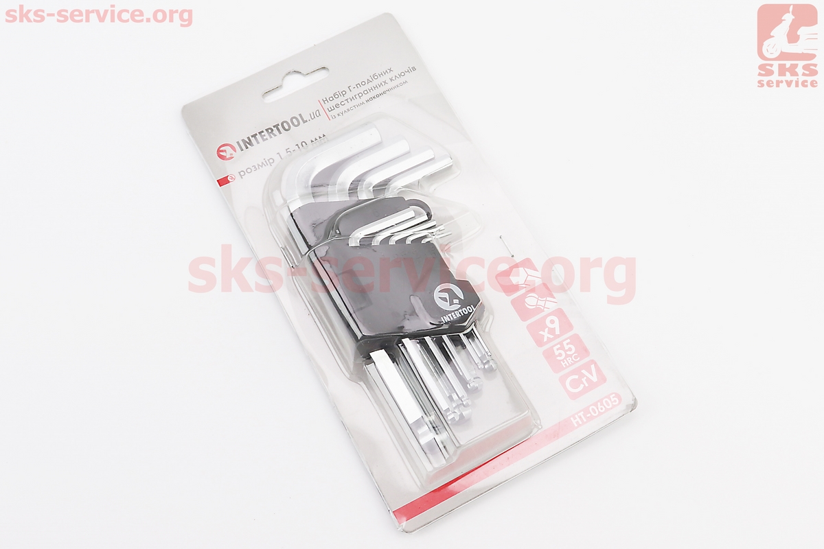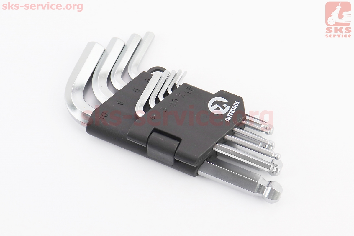 Набор Г-образных ключей с шарообразным наконечником HEX (1,5/2/2,5/3/4/5/6/8/10мм) CrV HT-0605