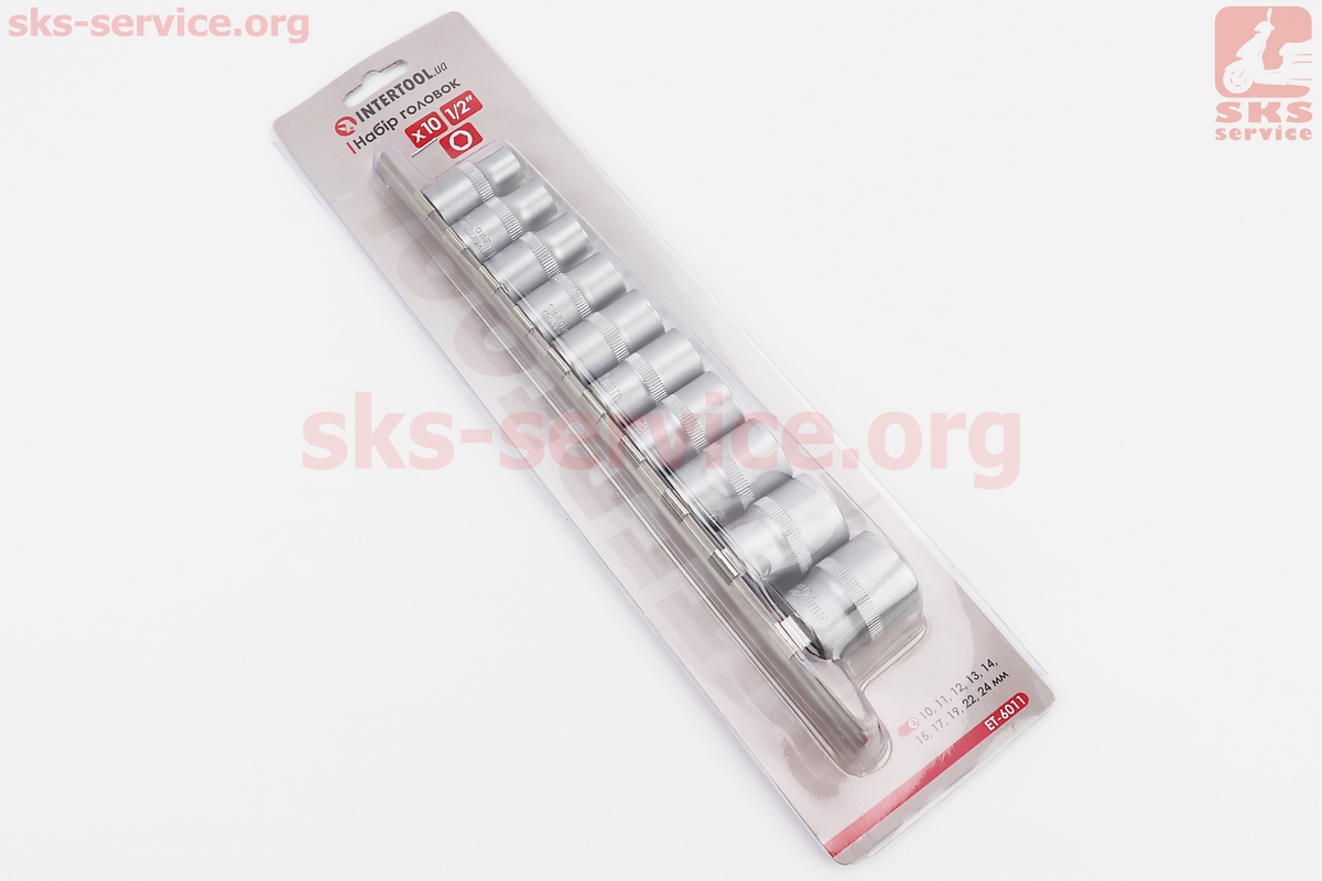 Набор головок торцевых на планке 1/2" 10шт (10/11/12/13/14/15/17/19/22/24мм) ET-6011