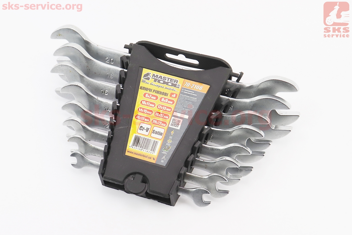 Набор ключей рожковых 8шт (6х7/8х9/10х11/12х13/14х15/16х17/18х19/20х22мм) "пластиковый держатель" 70-2108