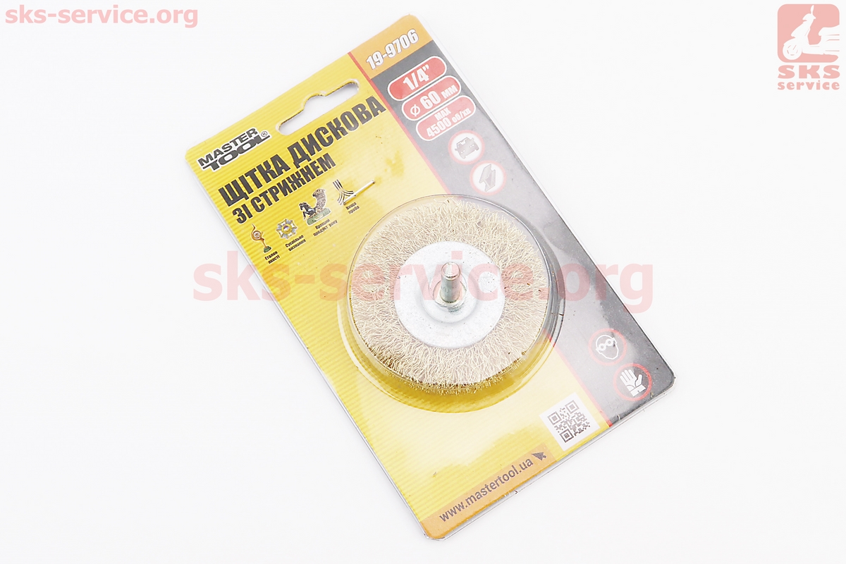 Щетка дисковая со стержнем 1/4" D-60мм из латунированной рифленой проволоки 19-9706
