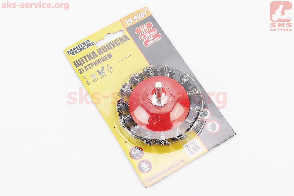 Щетка конусная со стержнем 1/4" D-75мм из плетеной проволоки 19-9307