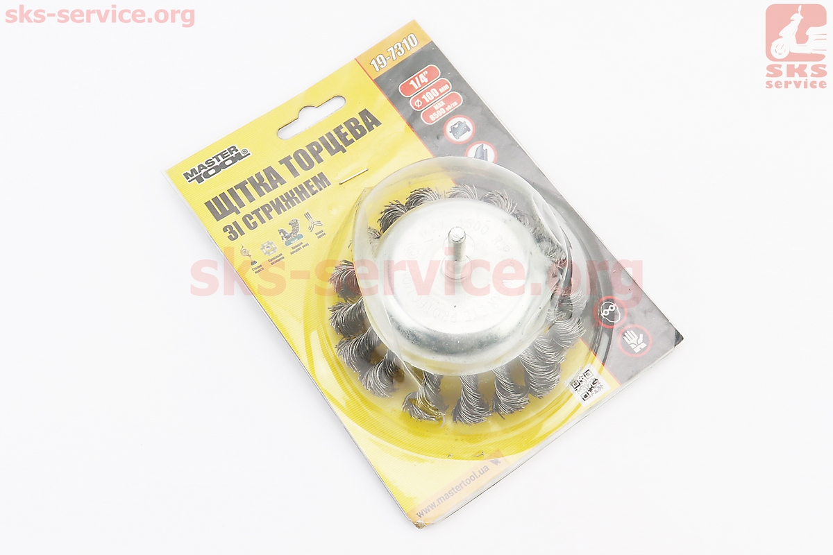 Щетка торцевая со стержнем 1/4" D-100мм из плетеной проволоки 19-7310