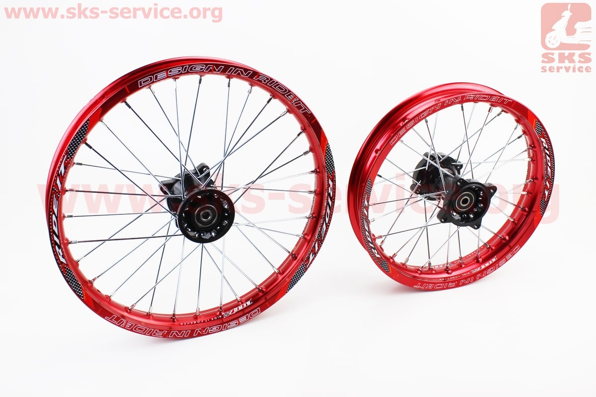 Колесо заднее спицованное 14 "ось 12мм" + переднее спицованное 17 "ось 12мм" к-кт 2шт, Kayo/Viper/Geon X-pit X-ride/YCF/Apollo/BSE, КРАСНЫЙ