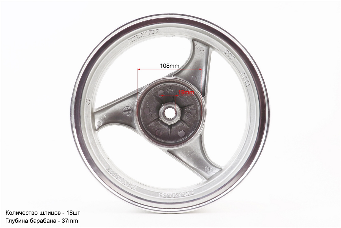 Диск задний литой MT2,50x12 Z18 для 2Т (бараб. торм., d-108мм) "3 луча" серый