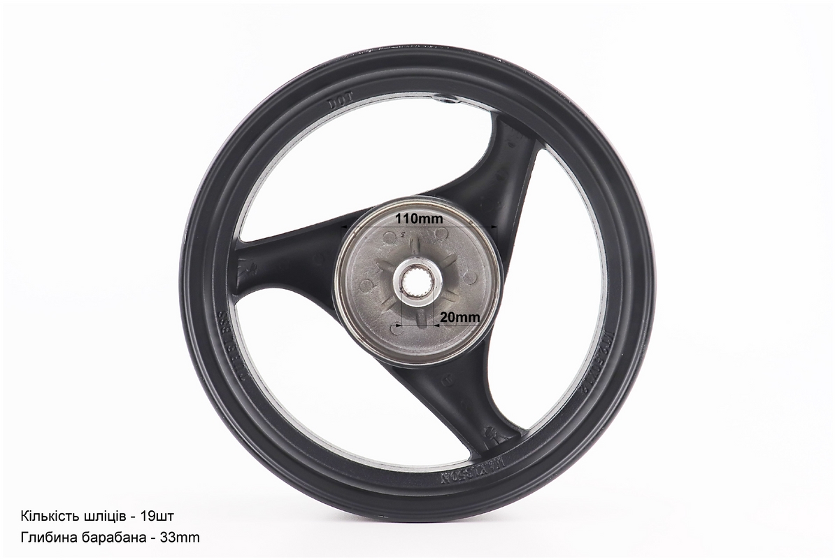 Диск задний литой MT2,50x12 Z19 для 4Т (бараб. торм., d-110мм) "3 луча" чёрный