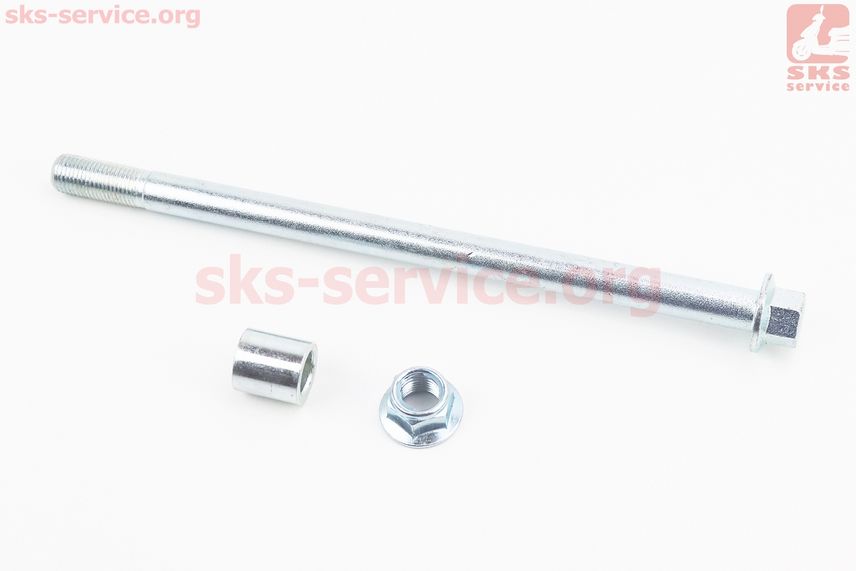 Вісь колеса переднього (під алюм. диск) d12mm; L210mm + втулка, гайка