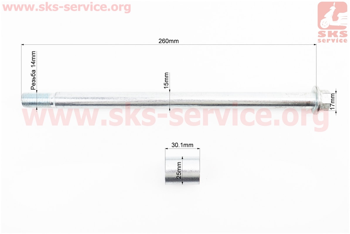 V200-F2 V250-F2 Ось колеса переднего d15mm; L260mm + втулка + гайка