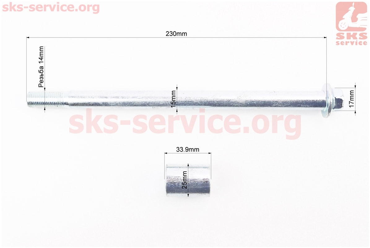Вісь заднього колеса d15mm; L230mm + втулка, гайка